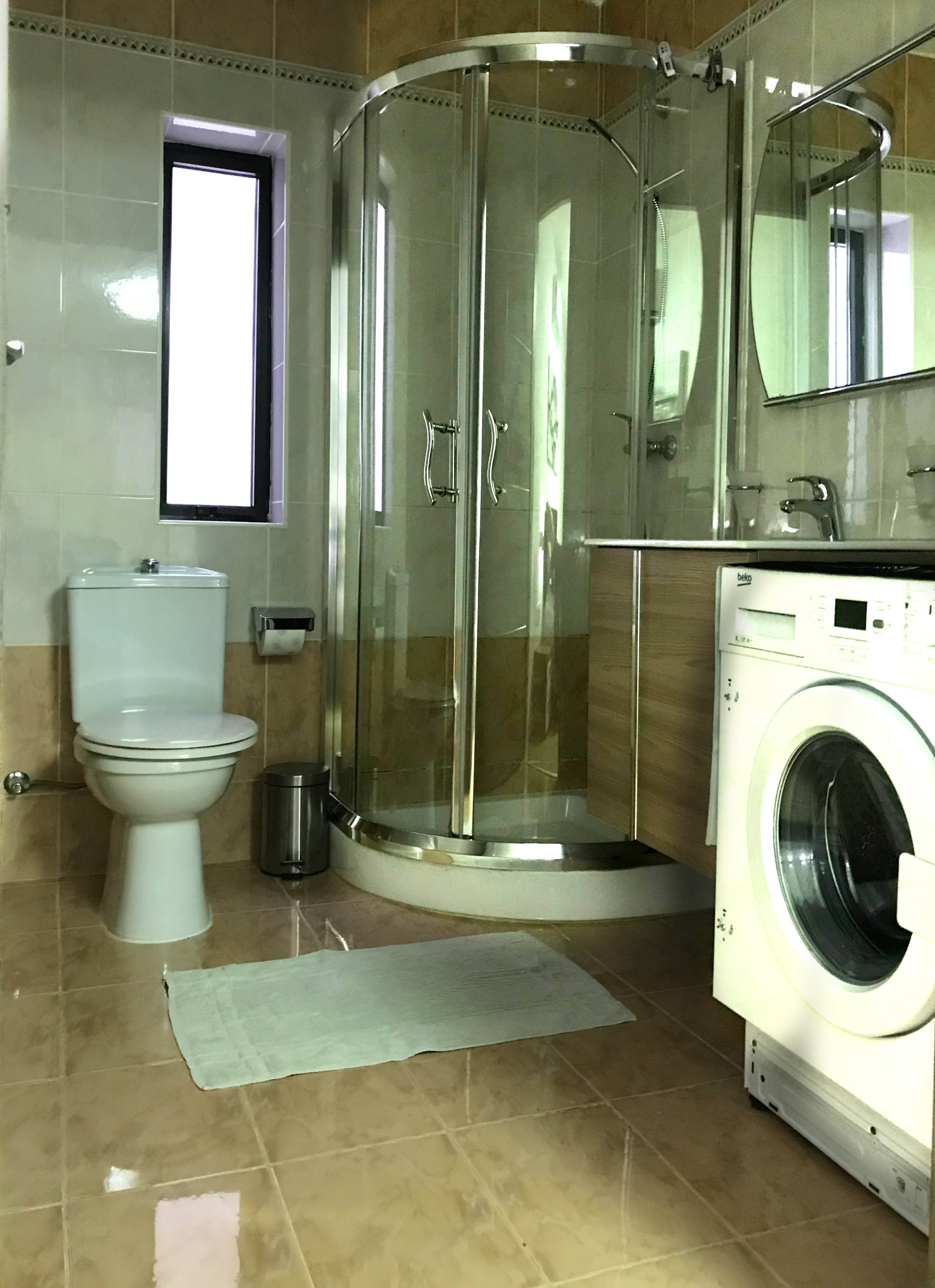 Bathroom has bathtub with shower facility as well. For your convenience, we also have a washing machine in the ensuite.