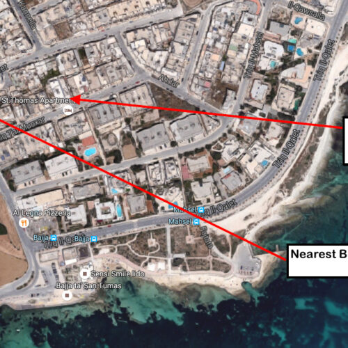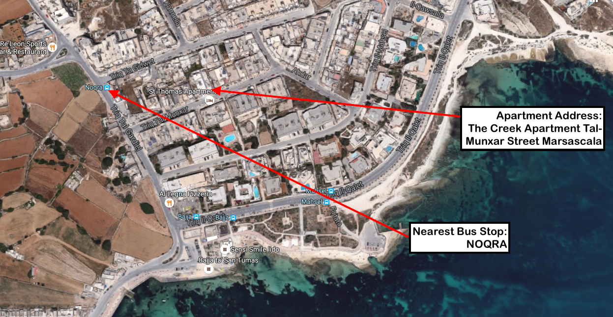 The nearby bus stop with the name Noqra is 3 minutes walk from the apartment. There is also a bus service from the airport to Marsascala .